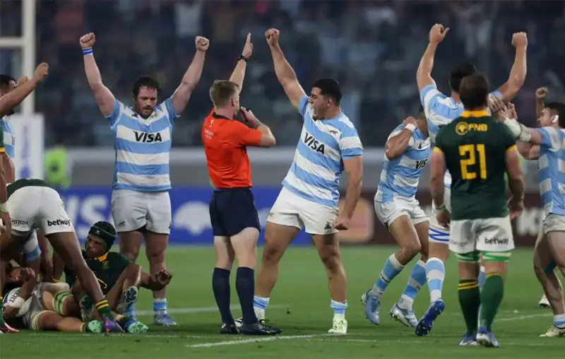 Сборная Аргентины одержала победу над Springboks со счётом 29-28 в Сантьяго, и теперь имеет в активе победы над всеми соперниками по Rugby Championship. Хозяева занесли четыре попытки: отличились Матео Каррерас, Пабло Матера, Жоэль Склави и Томас Альборнос. Флай-хав также реализовал три конверсии и один штрафной, показав отличную игру.